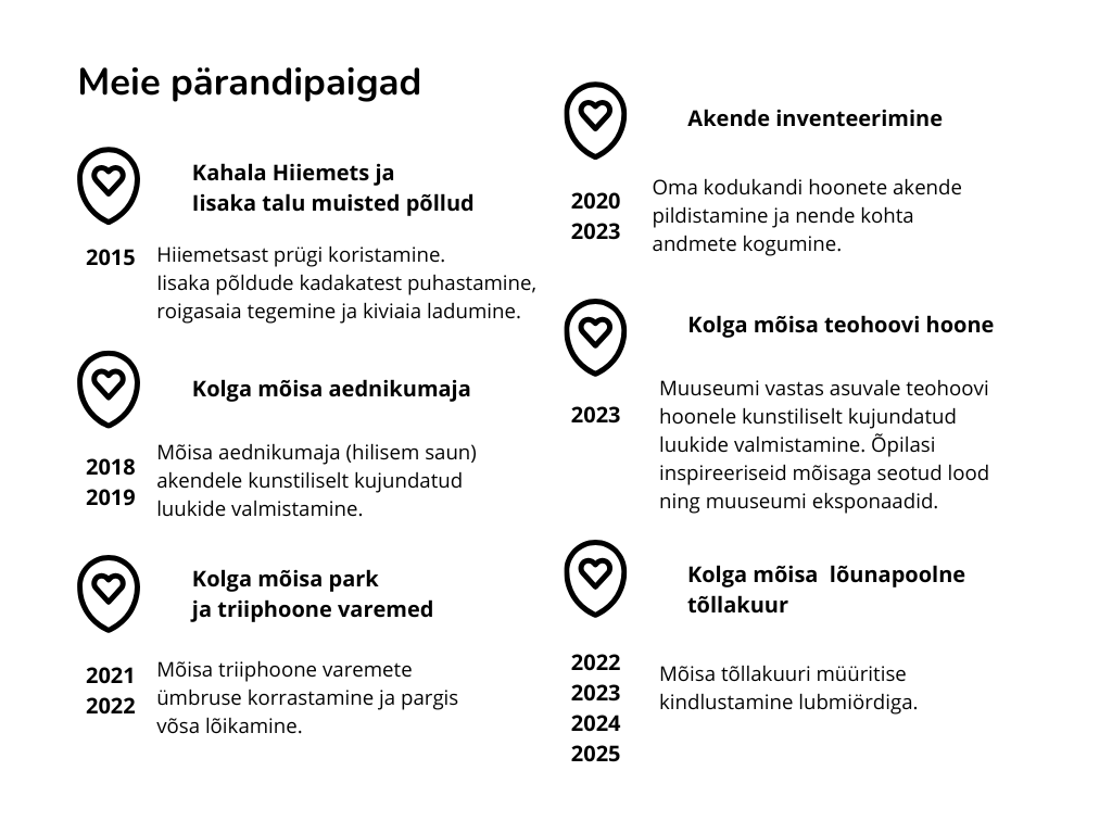 - korraldavad projekte ja tegevusi, mis aitavad kultuuripärandi objekte teadvustada ja nende tähtsust märgata;